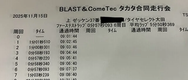今回の走行で、マシンのポテンシャルはさらに高い位置にあることが明確になりました。現状のセットアップでも、すでに56秒台は目の前に見えています。 今回のレコード奪還に満足することなく、さらに細かなデータの解析と改善を重ね、タカタサーキットにおけるGR86の限界値をさらに引き上げていく決意です。「サーキットでの結果を、お客様への信頼に変える。」 ただ速いだけではない。タイヤの特性を理解し、それをタイムに繋げるためのノウハウが、ここタイヤセレクト大田にはあります。当日主催のブラスト様、コムテック様、そして共に走った皆様、ありがとうございました。
